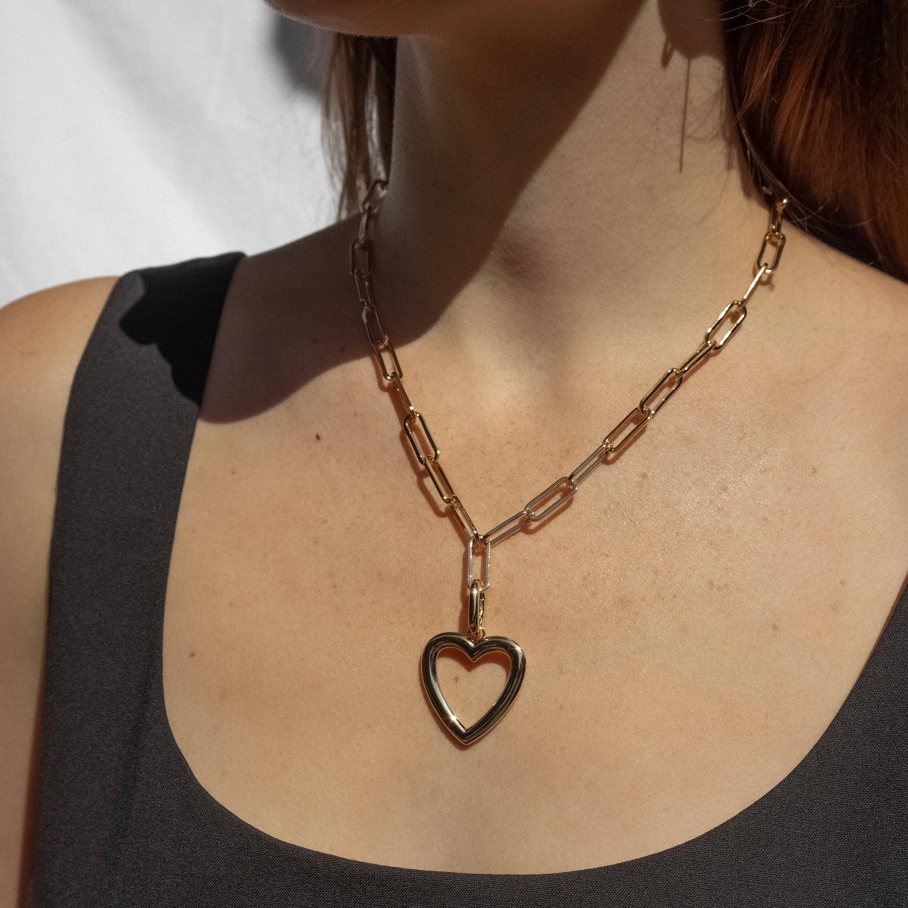 Our Thatch Open Heart Puffy Charm is a rich, sculptural statement in 14k gold — substantial enough to make a statement, crafted with enough detail to reward a closer look. The hinge clip makes it effortless to wear alone or layered with other charms, building a necklace that's entirely your own.